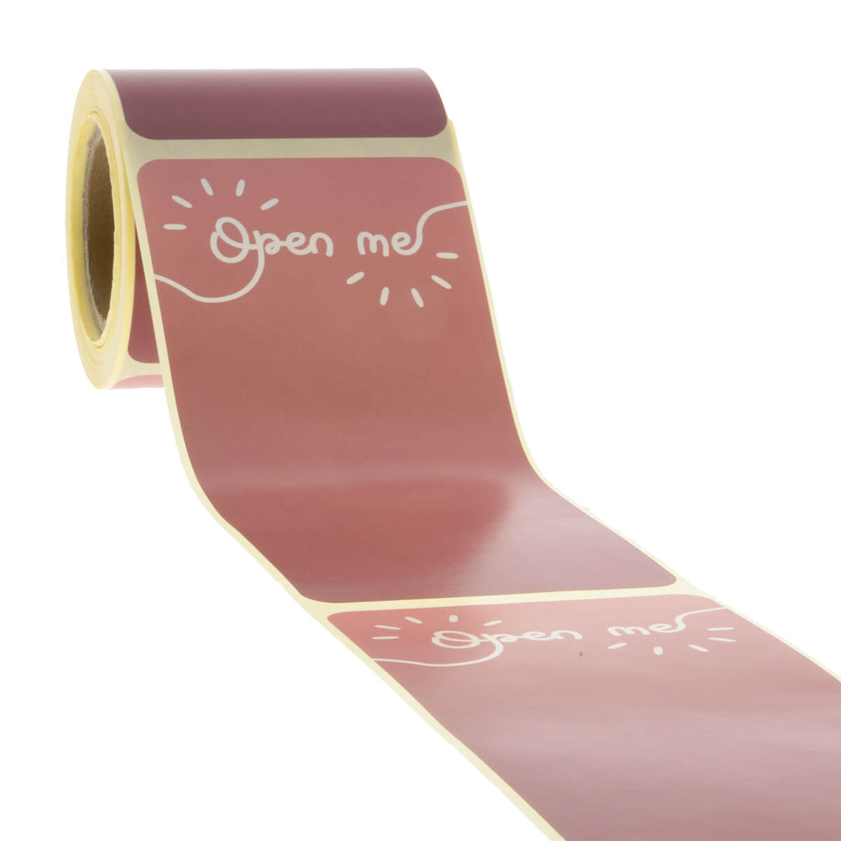 Deze leuke 'Open Me' stickers zijn perfect om jouw verzendozen, brievenbusdozen, pakketjes mee te sluiten. De sticker is erg leuk bij een witte of zwarte doos, maar hij valt ook goed te combineren met een gekleurde doos. De sluitsticker geeft een mooie uitstraling af en geef je je pakketjes, dozen wat extra detail. De sticker heeft aan de bovenkant een roze 'punch' kleur en wordt steeds iets donkerder waarbij de onderkant een soort bordeaux rode kleur krijgt. Een verpakking waar meer aandacht aan geschonken is ook erg leuk voor de klant. De breedte van deze stickers is 70 mm en is 160 mm lang. Wij verkopen ook andere sluitstickers met andere bedrukkingen, zo kan je makkelijk kiezen welke jij nodig hebt voor je pakketjes, dozen en welke het beste bij jouw huisstijl past. Sluitstickers zijn ideaal om grote pakketten, dozen mee te sluiten. Zo heb je geen onhandige tape nodig wat overal aan blijft plakken.