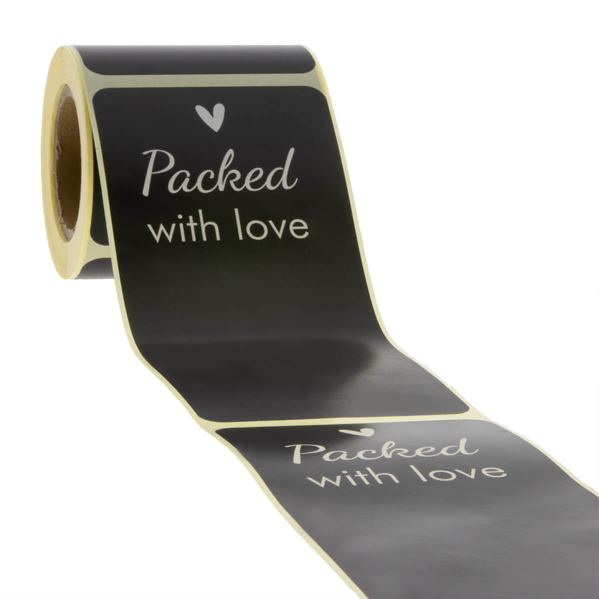 'Packed with love' had onze slagzin kunnen zijn. Eigenlijk is alles wat we verkopen, erop gericht om uw producten te verzenden en verpakken met liefde. Hoe toepasselijk is het dan dat precies die tekst staat afgedrukt op deze sluitstickers? Met het hartje dat boven de tekst is afgebeeld en de stijlvolle matzwarte kleur, zou je er bijna verliefd op worden. We verbinden met deze sluitetiketten het praktische met het mooie en liefdevolle.