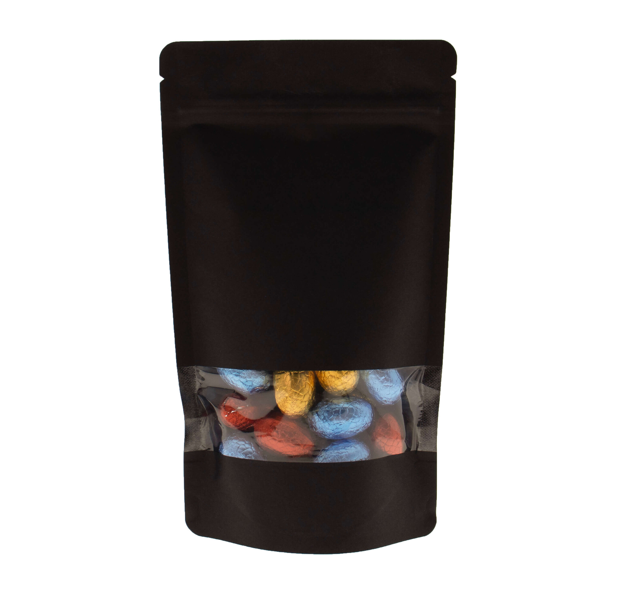 Deze mat zwarte stazakken met venster hebben een moderne en luxe uitstraling en zijn ideaal voor het verpakken van kleinere tot middelgrote hoeveelheden producten. Met een formaat van 130 x 225 mm en een bodem van 70 mm bieden ze een inhoud van circa 500 ml. De transparante vensterstrook laat de inhoud mooi zien, wat zorgt voor een aantrekkelijke en professionele presentatie.