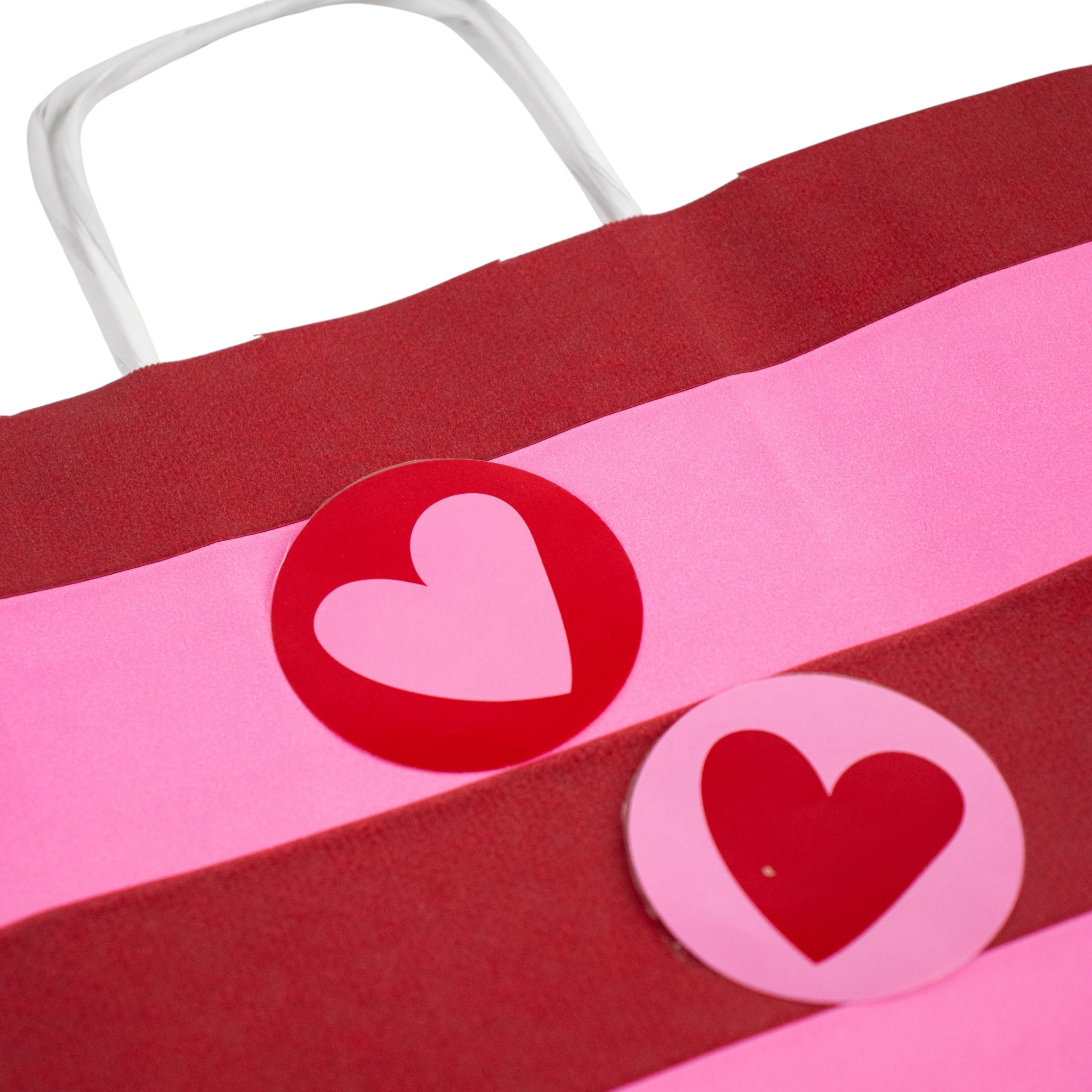 Met deze 'Stripes heart' stickers geef je jouw verpakkingen een speelse en liefdevolle uitstraling. De combinatie van een roze ondergrond met een rood hart zorgt voor een opvallend en modern design.