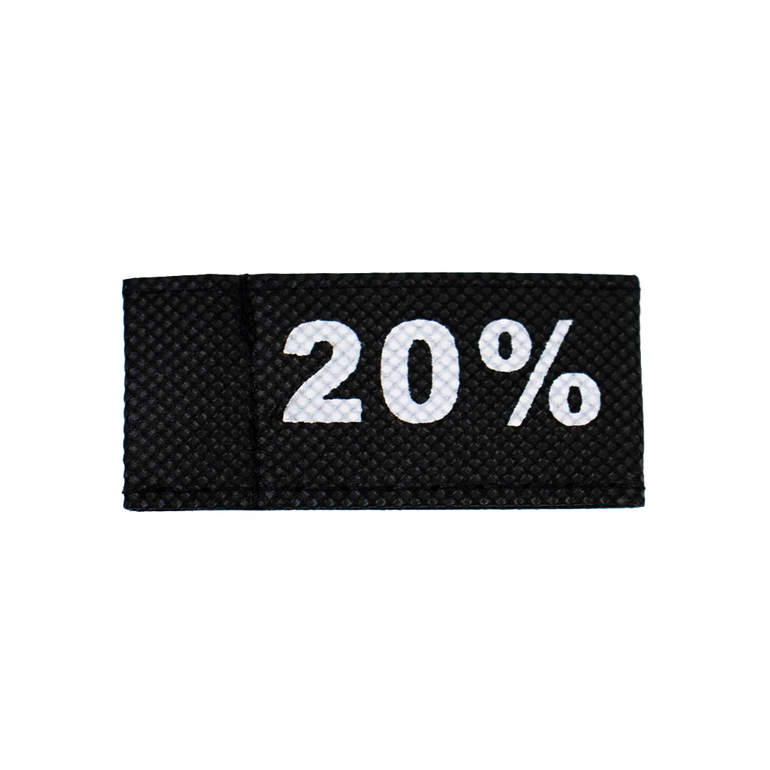 Bestel nu je Kledinglabel 20% zwart 3x6cm op www.rotimshop.nl