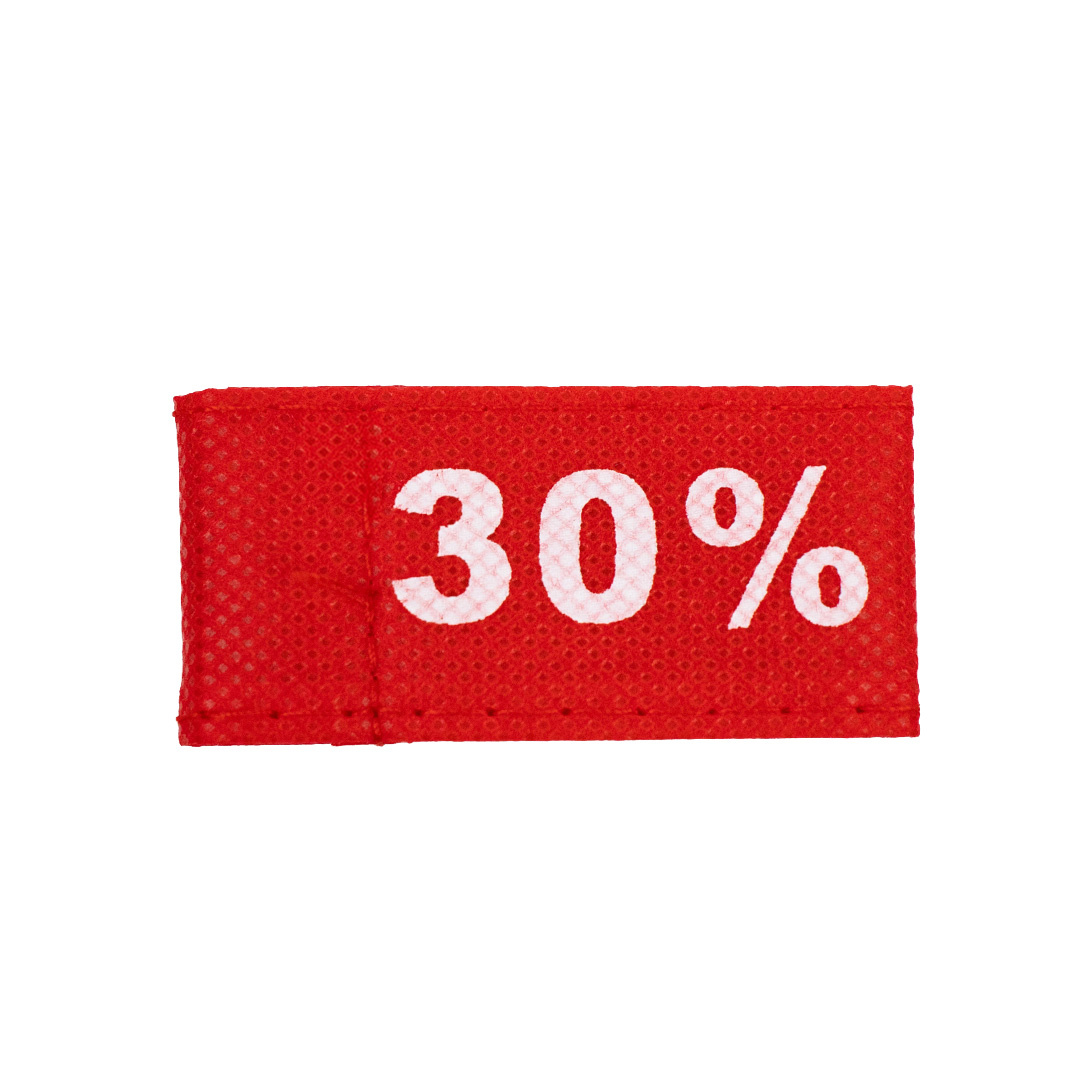 Bestel nu je Kledinglabel 30% rood 3x6cm op www.rotimshop.nl