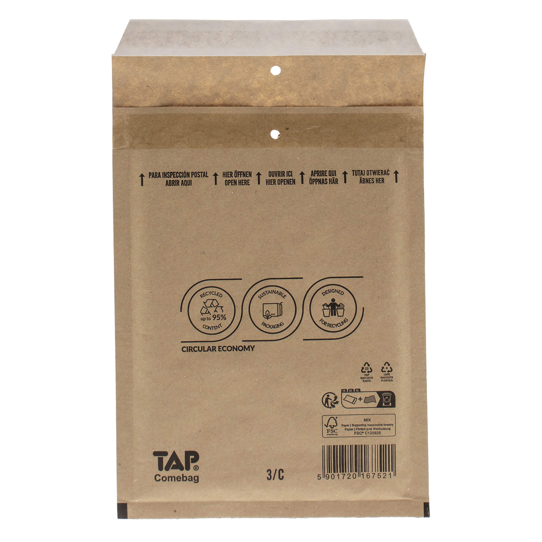 De bubbel envelop C heeft een binnenmaat van 15 x 21.5 cm en een buitenmaat van 17 x 22.5 cm. De bedrukking vindt plaats aan één zijde in full colour (CMYK). Witte bedrukking is niet mogelijk. Het maximale drukoppervlak is 13 x 19 cm – ruim genoeg voor een logo, korte boodschap of opvallend design