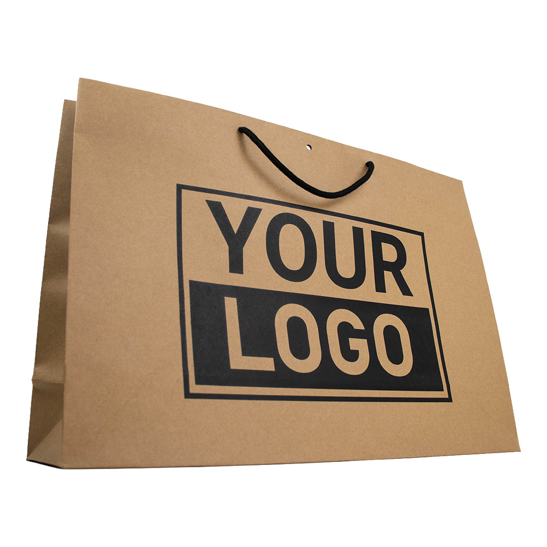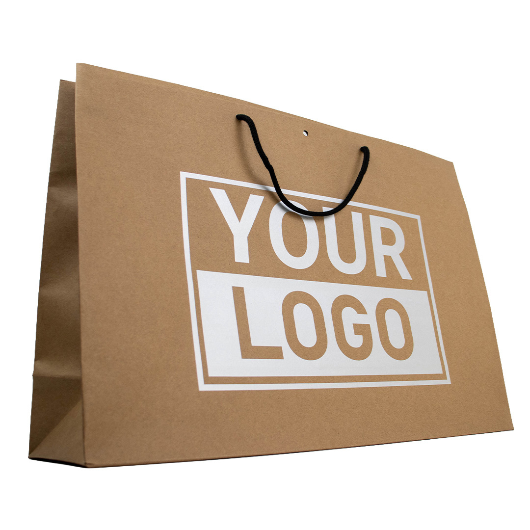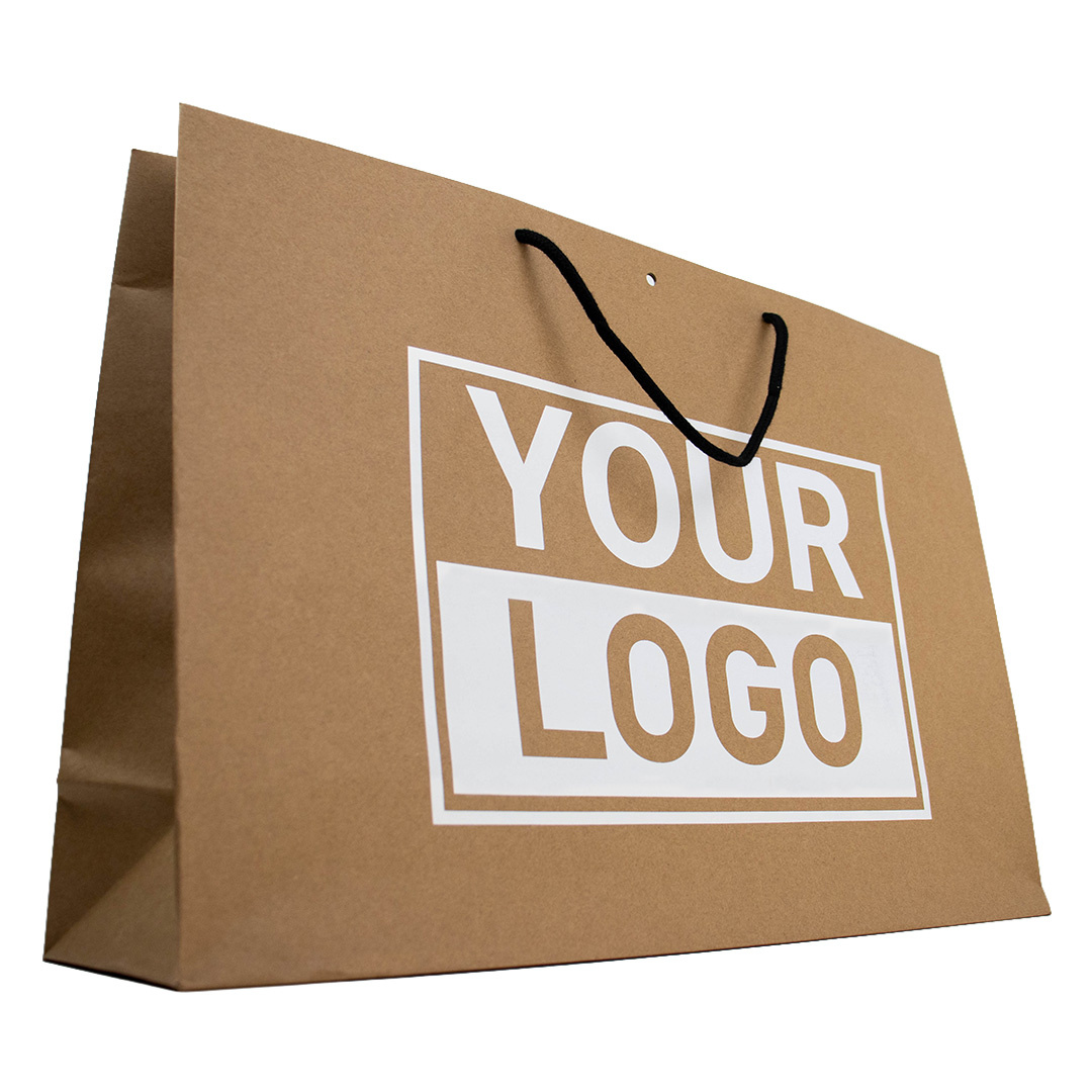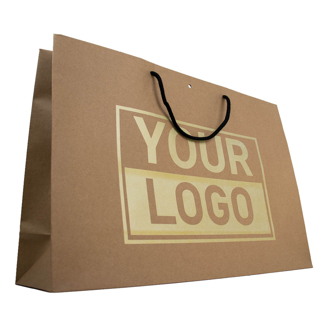 Dit extra grote bruine cadeautasje is perfect voor het stijlvol verpakken van volumineuze cadeaus, kleding, schoenendozen of grotere retailproducten. Door het cadeautasje te bedrukken met jouw logo of ontwerp geef je elke aankoop een professionele en herkenbare uitstraling. Het stevige kraftpapier en de luxe zwarte handvatten zorgen voor een sterke en representatieve verpakking.