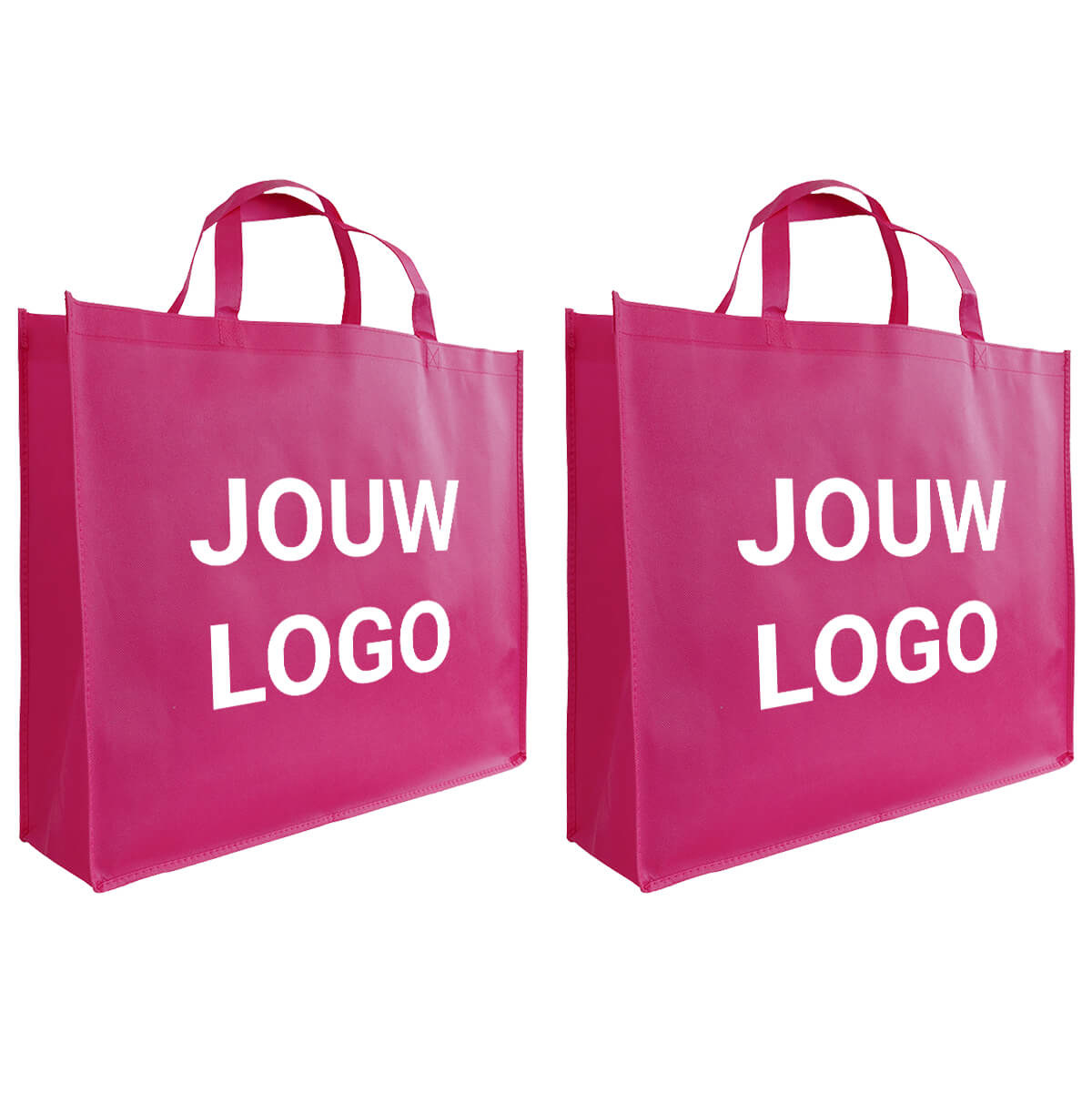 Met een afmeting van 54x14x45 is deze tas een van de grootste non woven shoppers uit ons assortiment. Heb je net een lekker warme winter outfit verkocht? Het is voor de klant natuurlijk fijn als hij deze aankoop mee krijgt in één grote, stevige tas. Hier is de grote non woven shopper perfect voor! Met deze originele, fuchsia kleurige shopper zul je de klant erg blij maken.