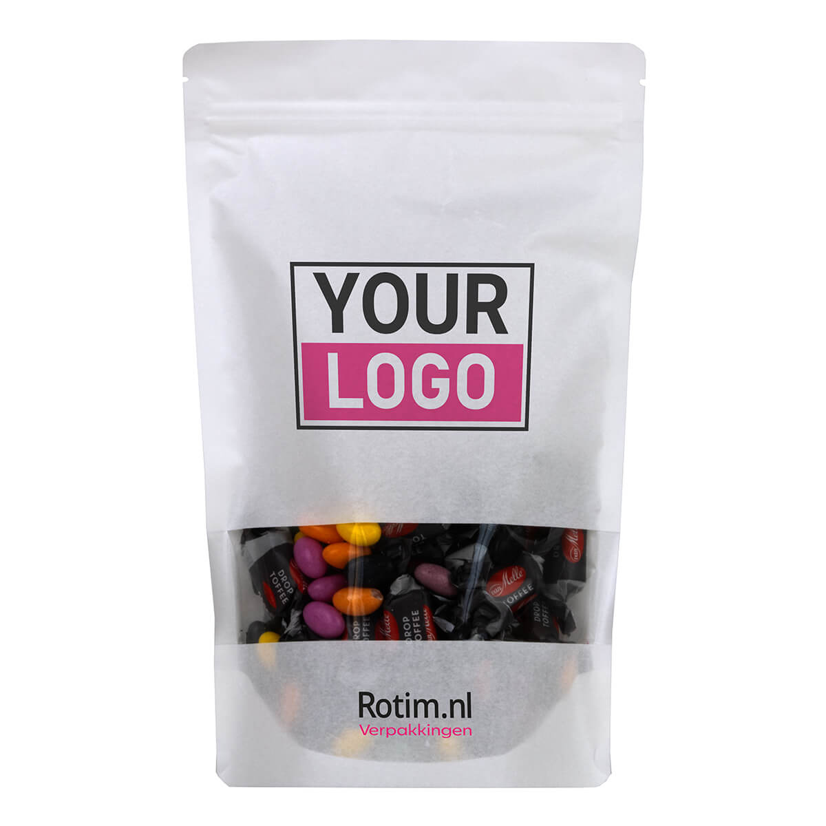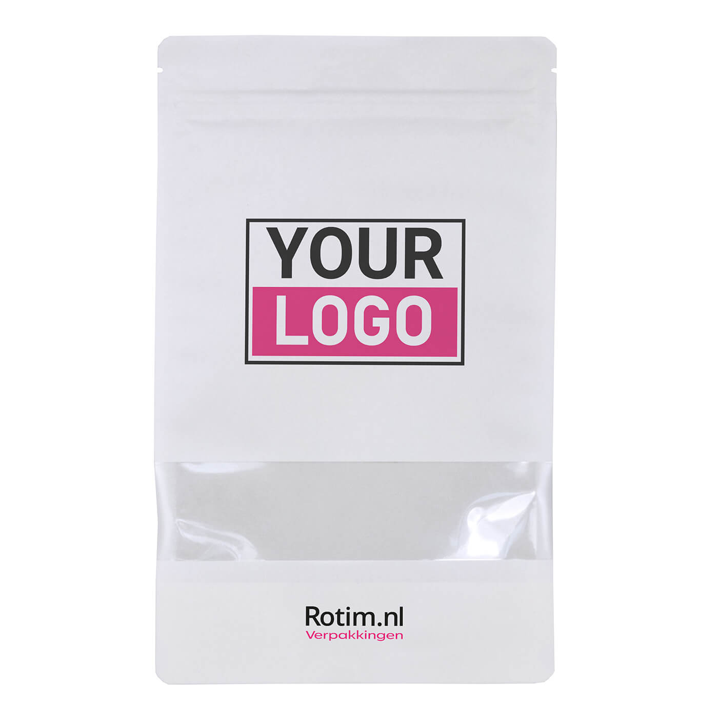 Wil je dat jouw producten direct opvallen? Laat dan deze ruime witte stazakken met venster (18x29 cm) bedrukken met jouw eigen ontwerp. Of je nu noten, granola of andere voedingsmiddelen verpakt, met deze zakken geef je niet alleen bescherming aan je product, maar ook een krachtige uitstraling aan je merk.