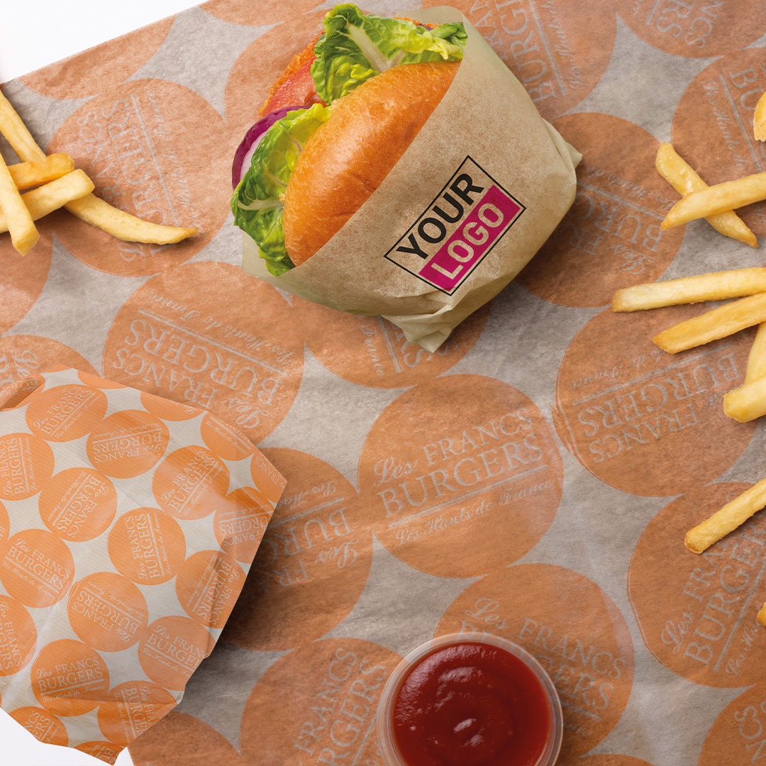 Dit bruine vetvrije papier van 20 x 25 cm is ideaal voor het verpakken van voedselproducten zoals burgers, sandwiches, wraps en andere takeaway-gerechten. Door het papier te laten bedrukken met jouw logo of ontwerp geef je jouw verpakking direct een ambachtelijke en professionele uitstraling.