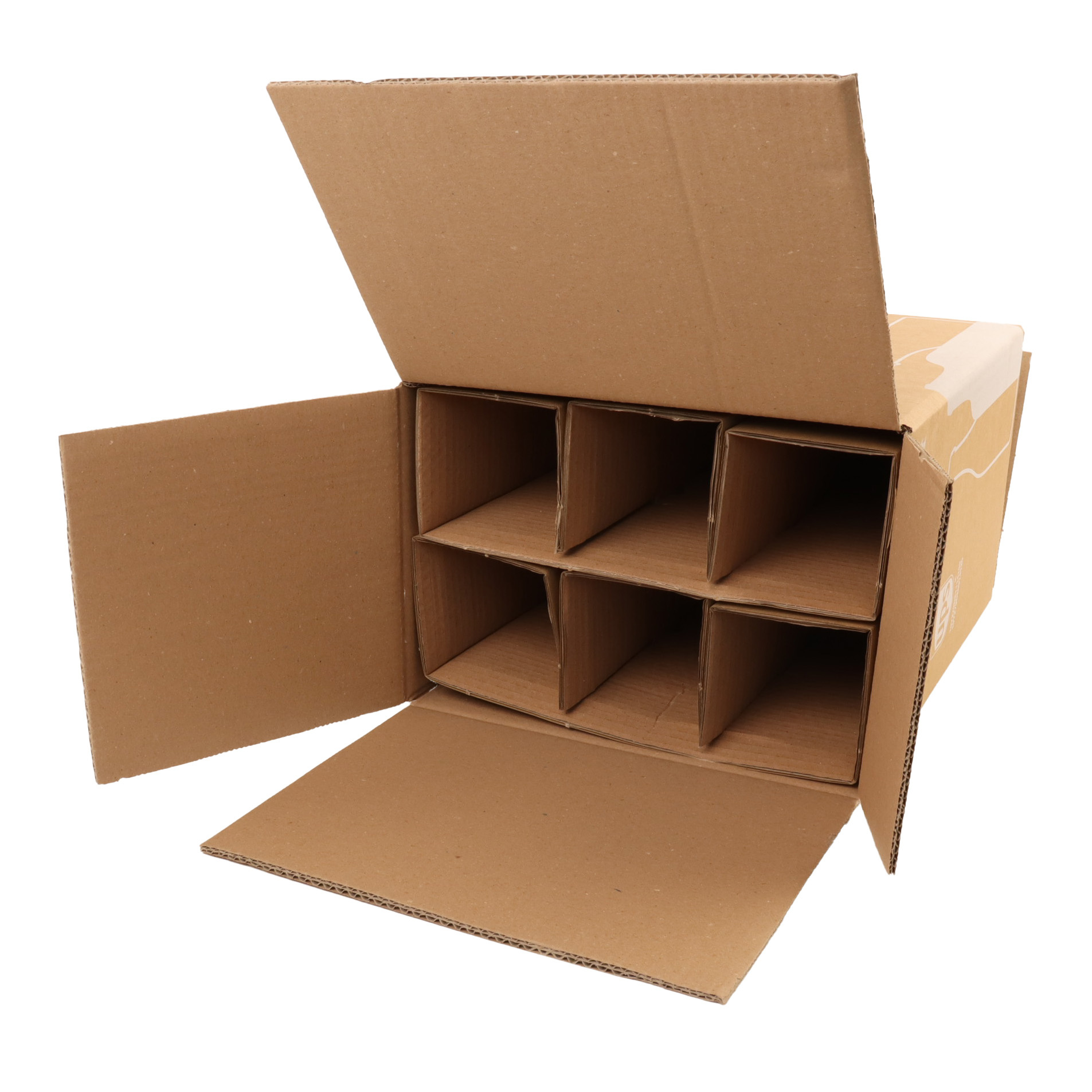Deze wijnverzenddoos bestaat uit 3 onderdelen. Ten eerste de omdoos en daarnaast ontvang je bij deze verzenddozen 2 inlays. De inlays zijn gemaakt van enkel golfkarton en de omdoos is gemaakt van dubbelgolf karton voor extra stevigheid. De verzenddozen zijn geschikt voor het verzenden van 6 flessen met een maximale doorsnede van 90 mm en hoogte van 360mm.